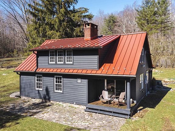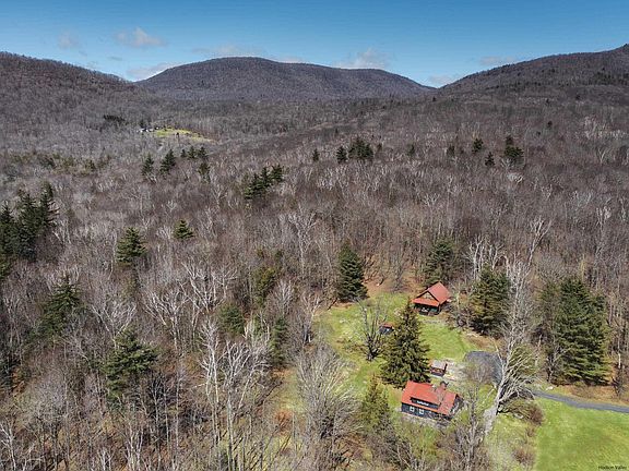 Nestled in the serene Silver Hollow area of Willow, NY, this enchanting property offers tranquil living and privacy with a main house plus separate studio building sprawled across 4 acres of park-like land. The parcel includes a sunny meadow and sloping lawns outlined with natural dry stacked rock walls, and is surrounded by Catskill Mountains: Mt. Tobias to the south, Mt. Tremper to the West, and Little Rocky in hiking distance at the north property line. The renovated main house exudes a sense of warmth and relaxation. The 4-bedroom, 2-bathroom home features meticulous maintenance and thoughtful upgrades throughout with well-appointed design choices. Downstairs, heated cement tile floors grace the full bathroom with walk-in shower, while the upstairs bathroom with soaking tub emits a spa-like aroma from the natural cedar wood ceiling while soaking. A newly installed stackable washer/dryer is located in the ground floor bathroom. With its bungalow ambiance and open, flowing floor plan downstairs, the home invites relaxation and gatherings warmed up with an efficient and sexy Rais round wood stove. There is oil baseboard heat as well, and a brick fireplace in the living room. A newly installed whole-house generator ensures peace of mind and automatically switches on and fully powers both buildings in the event of a power outage. Wood floors adorn the living areas and bedrooms, while the entryway mudroom and kitchen have Italian limestone-like ceramic tiles laid in a herringbone pattern. The pièce de résistance situated on the hill above the house is a magnificent 27’ x 36’ post-and-beam open studio building that includes an upstairs loft area. The current owners use it as an art studio and home office, but consider it your blank canvas — It’s huge and bright with a soaring ceiling height and a new wood stove in addition to the Rennai heating units. The ample front deck beckons with mountain views and sunshine all day long due to southern exposure, creating an idyllic retreat for creative living. OPEN HOUSE SATURDAY 4/6 from 1-3 pm