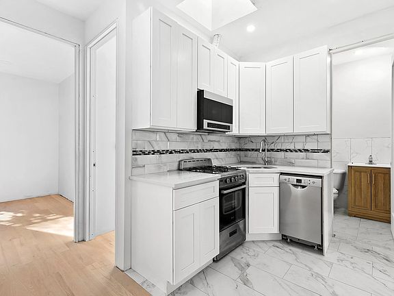 Perfect for investors or homebuyers, this thoroughly renovated two-family shines with all-new interiors, private outdoor space and a finished basement in a convenient East New York location. Throughout each unit, you'll find premium finishes, including luxurious hardwood and stone tile floors, tall ceilings, bright windows and well-appointed kitchens and baths. The two-bedroom, two-bathroom duplex begins on the garden level with an expansive open-plan living and dining room. The kitchen gleams with sleek cabinetry and stainless steel appliances, including a gas range, French door refrigerator, dishwasher and built-in microwave. Two large bedrooms offer garden views and easy access to the large full bathroom. Outside, enjoy al fresco entertaining in the beautiful, oversized private backyard. The full-height finished basement includes a massive rec room with tile floors and recessed lighting, perfect as additional living space, a playroom, home office or all of the above. A second full bathroom, side-by-side washer-dryer and excellent storage space complete the home. You'll find a stainless steel kitchen, a spacious living room, three bedrooms, and a full bath in the sunny top-floor unit. Central HVAC and double-pane windows ensure year-round comfort, while an updated façade and forecourt add wonderful curb appeal. Located on a tree-lined East New York block, this two-family is close to fantastic shopping, dining and services. Just a block away, City Line Park features basketball, handball and baseball courts, a skate park, a running track and playgrounds. Highland and Forest Park offer 500 acres of hiking trails, bridle paths, a golf course and a bandshell featuring free concerts in the summer months. Nearby A/C and J/Z trains and excellent bus service provide easy access to the rest of the city.