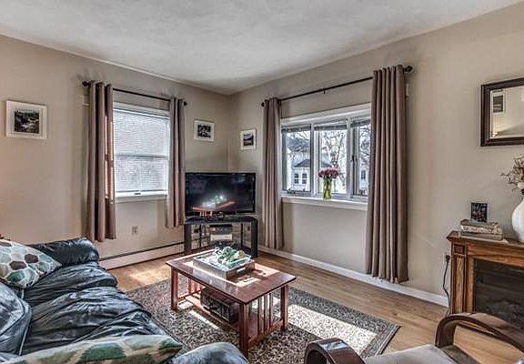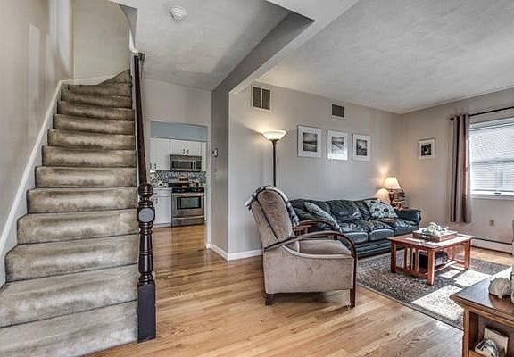 Townhouse style residence that feels like a single family with its cozy front porch and private driveway! This four bedroom, two and a half baths home features a spacious eat-in kitchen with updated stainless steel appliances hardwood floor and ample cabinet and countertop space, a perfect chef's kitchen! The bay window in the living room offers a great view of the neighborhood and lets the natural light flow in! The closet space in this home is exceptional and the unfinished basement will hold all your treasures! The location truly offers the best of both worlds, a neighborhood vibe within walking distance of all the best Melrose has to offer from the hip and vibrant atmosphere of downtown to all transportation and a park one block away! Central air conditioning. New roof. Great value!