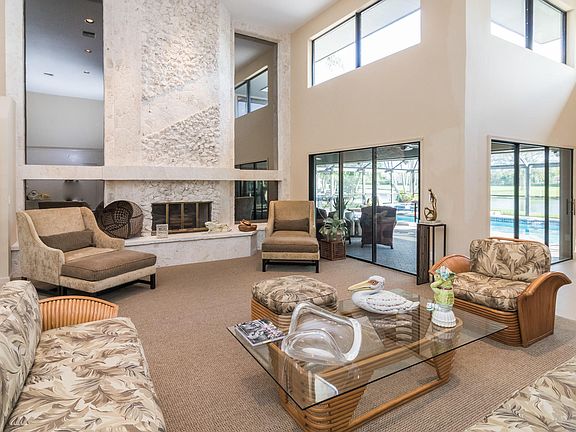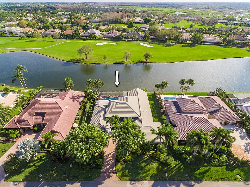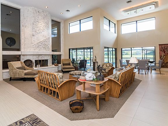 Gorgeous lake & golf views surround this sun-filled, uniquely updated, 3BR/41/2BA + Den open-plan home located on the 9th hole of Squire course in the highly sought-after community of Marlwood Estates in PGA National. Desirable features include soaring 2-story ceilings, huge windows and sliding glass doors throughout, custom decorator updates using the finest materials, a grand coral fireplace, a remodeled open-concept kitchen, a $20K custom stainless steel Smith & Deshields Deco front door, 24'' bamboo-look porcelain floors, high-end ceiling fans & window treatments, impact windows & accordion shutters, and a newer roof.