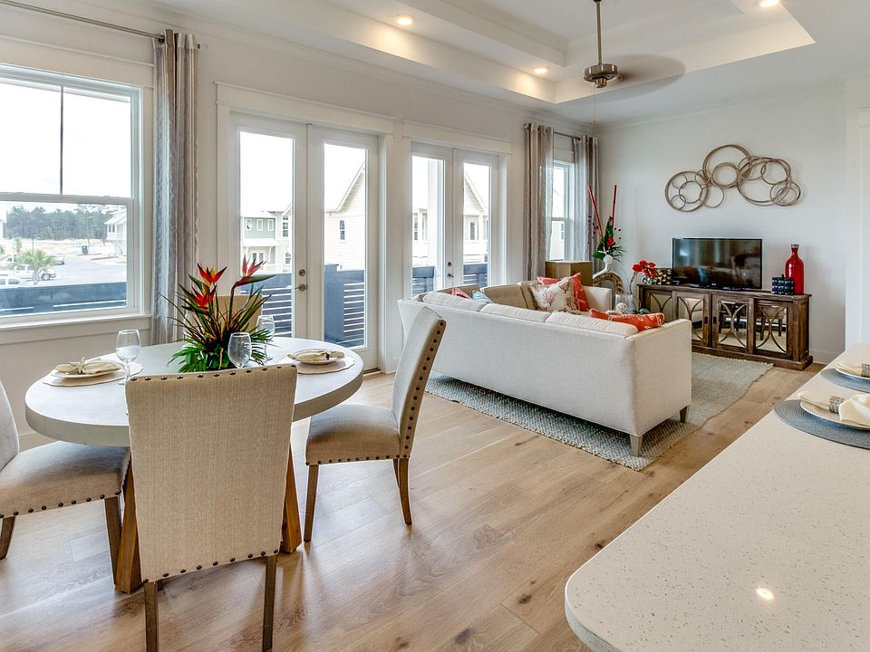 Prominence the hottest community on 30a!! The Aruba Floor plan is uniquely designed with a one car garage attached. This incredible townhome features a vast open floor plan with six windows lining the living space, that opens to the large covered porch. The Gourmet kitchen includes stainless steel appliances, Granite counter tops, and several upgrades throughout. Crown molding and tray ceilings can be seen throughout the entire townhome. The master and guest bedrooms will be found on either side of the home. The master bathroom includes granite counter tops, dual vanity sink in Master, large walk-in closet, and a frameless glass shower. Residents will enjoy easy access to resort style pools, fitness area and private shuttle service to the beaches of 30A. Across from The Hub