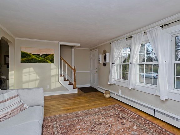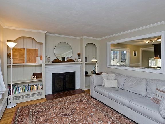 Let this beautiful Cape welcome you home each day, featuring wood floors, neutral interior paint and an abundance of natural light. Entertain with ease in a layout that helps you stay in the conversation with guests. Start in the living room with a fireplace flanked by built-in shelving units. Head to the adjacent eat-in updated kitchen with stainless steel appliances, bay window, and breakfast bar overlooking the living room. On the opposite side of the room, an interior window overlooks the dining room with pellet stove and the spacious, fenced-in yard. On rainy days, enjoy the partially finished basement with ample rec space, plus storage and workshop area. All 3 bedrooms offer a great night’s rest, especially the master with 4XL closets and en suite. Located with easy access to shopping, highways, parks and sports fields. Roof Shingles 2019 (APO), Boiler 2018 (APO). New doublewide driveway, deck & fence. HIGHEST AND BEST OFFERS DUE BY TUE 1/23 by 5PM