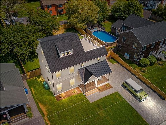 Introducing “Rising Tides” at 73 Ellery Avenue, custom coastal elegance just a stone’s throw from Easton’s and Sachuest Beaches & historic Newport. This exquisite home is a foundation-up new construction built with the highest quality finishes. Designed with generous living & sleeping spaces and an eye toward year-round entertaining. Through the front door, you will be taken by gorgeous maple floors & light-filled living & dining areas. Or enter through the secondary entrance to a custom drop zone for your beach gear. The chef’s kitchen has been outfitted with Thermador appliances & ample prep space with a walk-in pantry. There are two Primary Suites including one on the main level. The second level boasts an additional Primary Suite & two guest bedrooms with a full bath & oversized laundry room. Both Primary Suites have elegant bathrooms & custom walk-in closets. The centerpiece of this home is the upper-level entertaining space. Created to be the ideal location for parties & get togethers, this approximately 500-sf area with hosting kitchen & half bath opens to a huge deck with 180-degree views from St. George’s Chapel to the Newport Bridge, with stunning ocean views of Cliff Walk & Rough Point. Your living space continues outdoors with a fenced yard & patio area. After a fun day at the beach rinse off in your custom outdoor shower. While only a short walk to the beach, there is ample parking for 6 cars. Check out the virtual tour! Call for your private showing.