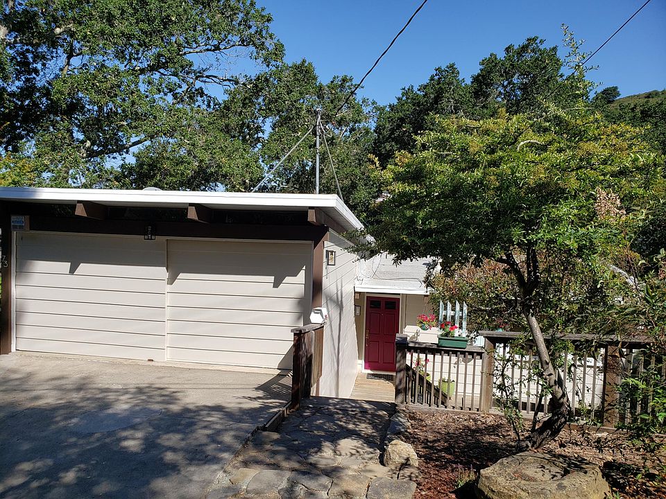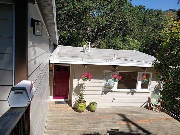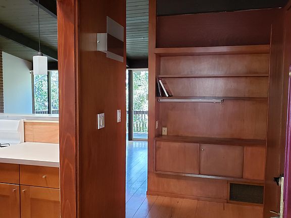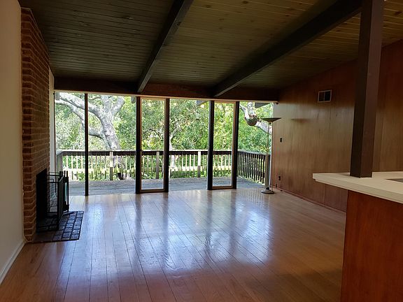 Mid-century modern house in a prime location in the prestigious Claremont Estates neighborhood. Nestled amog mature oak trees on a peaceful and quiet cul-de-sac off of Alvarado. Minutes down the steps to the Claremont Hotel, Domingo Street shops/restaurants and public transportation. Near Rockridge BART. Easy access to freeways (Hwy 13, 24, and Fwy 580). Freshly painted inside and out. Main house at street level has three bedrooms with original random plank hardwood floors throughout. Kitchen was remodeled a few years ago with stylish cabinets and lighting. There is a gas range, brand new counter depth stainless steel French door refrigerator, and a brand new stainless steel dishwasher. Wood burning fireplace in working condition. The "in-law" unit downstairs has one bedroom, full kitchen with refrigerator/electric stove, brand new stainless steel dishwasher, extra-large living/dining area, wood burning fireplace, and one recently remodeled stylish bathroom. Each unit could be completely independent with its own entry and heating system. The door at the top of an interior stairway can be kept locked to have complete independence or the door can be left open or even removed for the whole house to be used as one unit. Perfect for extended family member or a large family. Two car enclosed garage. Washer and dryer in a laundry room with additional storage space accessible to both levels. Large useable decks on both levels on three sides. Views of the canyons. Non-smoker please. Pets negotiable.