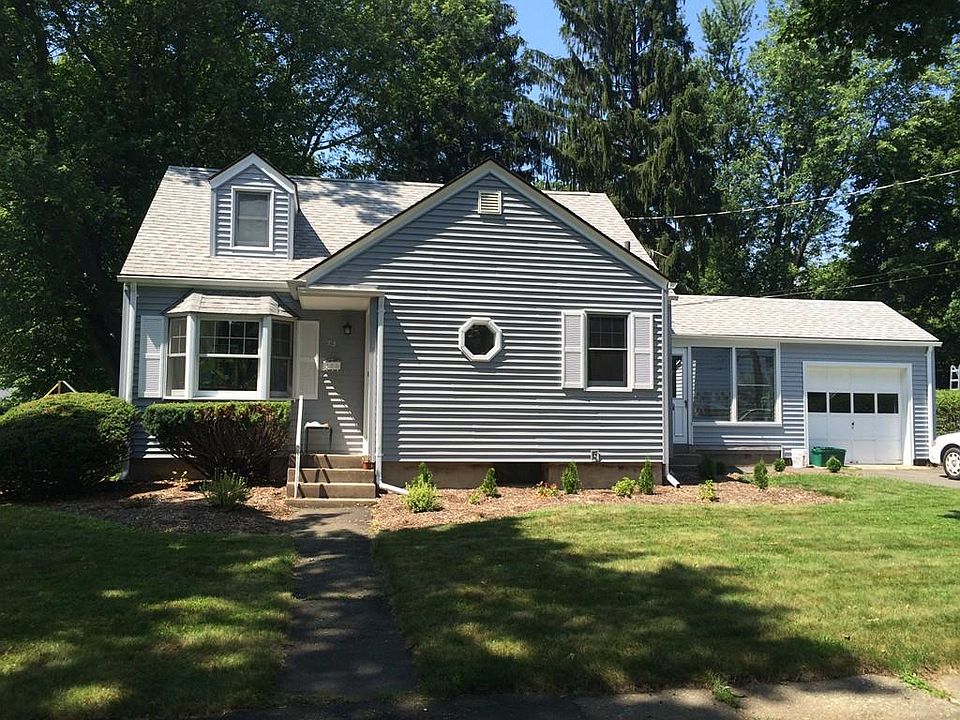 What a great starter!! Come take a peak at this 6 room 3 bedroom cape with a nice private yard, lots of hardwood floors, bath with tiled shower, 1/2 bath and 2 bedrooms on the second floor, newer carpeting, newer electrical service,newer roof, siding and gutters, 3 season breezway and 1 car attached garage. Nice neighborhood.