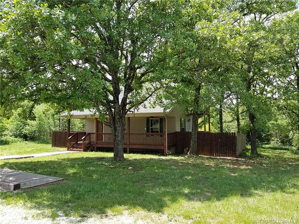 Spacious property with many possibilities. 2 Bedroom, 1 Bath home on 2.8 acres just a few miles south of Camdenton. Home was updated in 2010. Stainless steel appliances, laminate flooring, ceiling fan, vaulted ceiling. 30 year architectural shingles. Fenced back yard, private well, all electric. Room to build a garage. Relax on the spacious front porch in the quiet setting and enjoy the beauty of nature surrounding you. There is a concrete slap and previous foundation close to the highway. New gravel on driveway. Call soon on this one! Affordably priced!