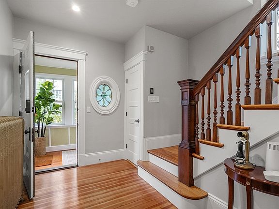 This Victorian gem exemplifies the perfect marriage of historic charm w modern aesthetics. Meticulous reno preserved the exquisite craftsmanship featuring arched doorways, intricate moldings & statement stairwell w bowed triptych of stained-glass windows. The kitchen is a stunner, redesigned for functionality & style. Massive island serves as a perfect centerpiece for meal prep & casual dining, while abundant cabinetry provides storage for all your culinary needs. Rear wall of glass blends indoor & outdoor living. Expansive dining room w views of rear yard, built-in china hutch and pocket doors to the cozy living room. Primary suite offers the perfect retreat w luxurious ensuite bath w radiant heated flooring & walk-in shower. 3rd floor provides versatile bonus space as a 2nd living room/lounge, 4th bedroom and/or home office. Outside, enjoy a serene oasis w multiple decks, patio, and mature landscaping perfect for lounging, dining and entertaining. OFFERS DUE by 2pm Mon, 9/30/24.