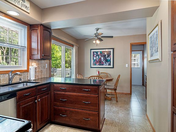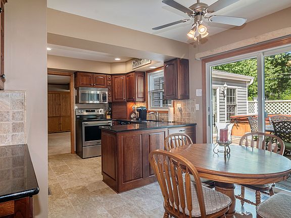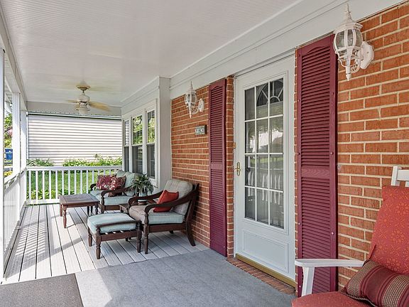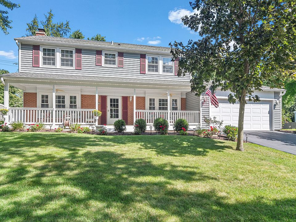 Beautiful four-bedroom, two and a half bath two-story home with a large welcoming front porch. This home is in pristine condition! Hardwood floors in foyer and dining room. The updated eat-in kitchen has custom cabinetry, granite countertops, stainless steel appliances, and upgraded porcelain tile. The breakfast room has a sliding glass door leading to a huge deck to enjoy the private backyard. Electronically controlled awning for those sunning days. Spectacular great room addition has vaulted ceiling, provides an abundance of light with the wall of windows and see-through fireplace opens to First floor den/sitting room. Entertainment size living room has a fireplace with gas logs. Large first-floor laundry room with built-in cabinets, sink, porcelain tile floor, and exterior door to the side yard. Master bedroom with his/her closets and private bath. Three additional spacious bedrooms. The finished basement has a recreation room with recessed lighting. Plenty of storage space in the unfinished part of the basement with built-in cabinets. Upgraded solid oak doors and trim. Fenced rear yard. Newer A/C & Furance 2014, windows, siding, and roof have been replaced.