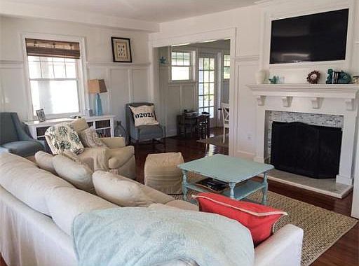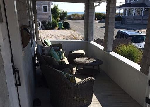 Great Price Break. Beautiful property only 1 house from the ocean. This 5 Bedroom 2.5 Bath Gambrel Home is waiting just for you. The wrap-around porch is so inviting, relaxing and begins to allow you to enjoy the water view that is available from many of it's rooms. Beautifully updated, this home features a new master bedroom suite with a granite dbl sink bath, hardwood floors throughout, central air, 1st floor sports a living room with fireplace, dining room off the kitchen, laundry & half bath, in addition to MSTR, 2nd floor has 2 more spacious bedrooms & a remodeled full hall bath, 3rd floor boasts 2 lge bedrooms (1 w/built-ins), a nicely fenced-in back yard for entertaining, & plenty of parking for all your guests. Truly a year round paradise or summer retreat!
