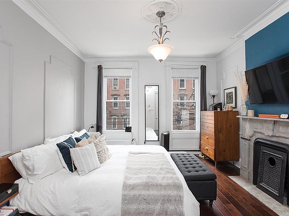 Simply stunning one bedroom plus den featuring classic details while thoughtfully renovated to the nines. A chef's kitchen offers Shaker- style cabinetry, quartz counters, subway tile backsplash & stainless steel appliances. The living room features an exposed brick wall &heart with stone mantle and wide plank hardwood floors. The adjoining room features a den that can be used as an office or nursery. A king - sized bedroom boasts original marble fireplace & oversized windows. Tastefully renovated bath with glass shower. Free Washer & dryer in building and extra storage. Minutes to PATH, Ferry, bus, parks and all the conveniences Hoboken has to offer. Available for May 1.