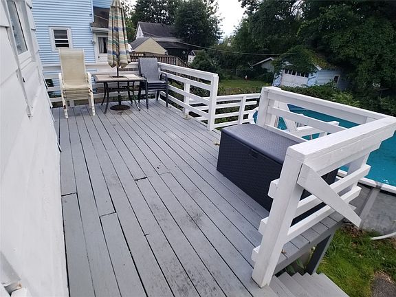 Affordable, move-in ready 3 bedroom home in an area of well maintained homes. Close to all amenities and only 1.5 miles to I-86. Enjoy cooling off in the above ground pool or relaxing on the large deck just out side of the dining room French doors. The second floor bathroom has a claw footed bathtub and a shower stall. There is a bonus room off the kitchen that can be used for a breakfast nook or a large pantry. 80% of the windows are Pella double pane insulated windows. The exterior window and door trim is maintenance free aluminum. New gutters, large shed in back yard, newer electrical breaker box, hardwood floors, freshly painted. Call your favorite realtor to see this affordable home before it's sold.