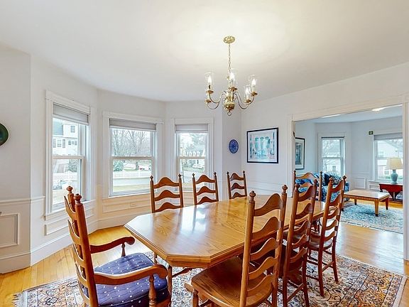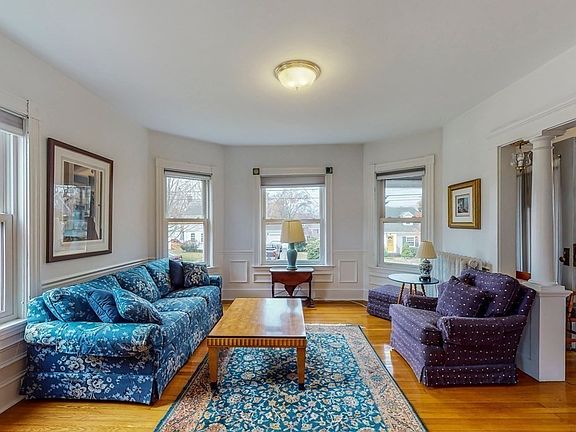 Let the Sun Shine In. This gracious home features 23 windows (many more if you include the sunroom) on 2 spacious living levels + an inviting layout with large rooms, high ceilings, hardwood floors and relaxing views. Well sited on a flat, 1/4 acre, corner lot with an enormous yard; additional exterior features include a stunning open air front porch and a wrap around farmer's porch on the family entrance. The wainscoted foyer radiates out to the LR, DR + EIK, allowing light and air to freely flow all around. The family room (or is it an office with private entrance?) and a bath complete the first floor. A bridal staircase leads up to 3 big, bright bedrooms; a study (which could become a nursery or a master bath ), a sunroom and a 2nd full bath. The unfinished attic is accessed by a solid set of stairs. Prime location close to to Reading's schools, library, skating rinks, YMCA, every downtown amenity and the MBTA's commuter rail stop.