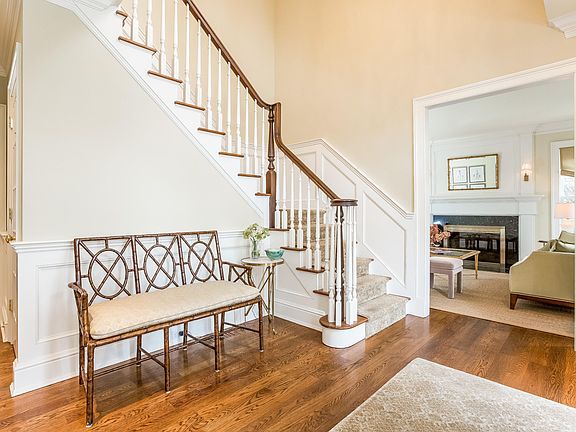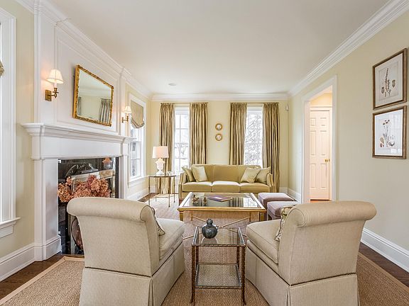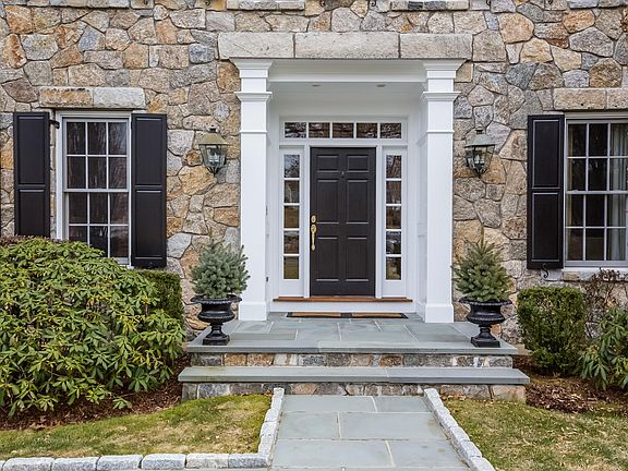 Exceptional In-Town Offering With Incredible Curb Appeal. Stylish and elegant stone and clapboard colonial situated on a beautiful, level lot with sprawling rear yard perfect for gatherings and recreation. Sunny, updated freshly painted kitchen and family room. Meticulously maintained and very turn-key. Move right into this 6 BR, 6.5 bath stately home and be steps away from all New Canaan has to offer. Four completely finished floors, 9ft ceilings, 4 gas fireplaces, library with coffered ceiling, walkout lower level with an extra office / bedroom, full bath and adjoining playroom / bonus room. Plenty of flex spaces to customize for your needs. Rear deck off kitchen French doors for enjoyment of beautiful late morning and afternoon sunshine.