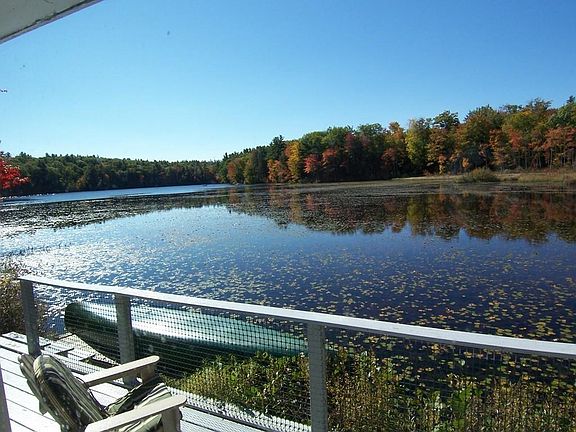 Here it is...your forever home! Waterfront home complete with sun-filled wrap-around deck, vegetable, fruit and flower gardens. Enjoy peace and quiet with only 6 neighbors on the pond and a dead end road. Radiant heat under the bamboo flooring and a beautiful soapstone wood stove to enjoy on those colder months or to take the chill out of the air. A glass wall with 3 doors facing your water-view flood the living room with light all day long. Large open kitchen with pantry. A separate dining room off the kitchen with large bay window for your kitchen herbs, makes for easy entertaining. 2nd floor has the master bedroom with skylights and plenty of closet space. Your second bedroom for your many overnight guests to enjoy and a lovely loft for your home office. Full bathroom featured on both the 1st and 2nd floor. New GenerAC that turns on automatically when needed. A separate studio/work shop (20X29) heated and actually looks like a small cottage. This is a turn key home, nothing needed.
