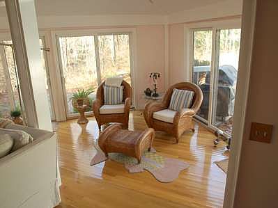 Private wooded lot with plenty of room to expand as well as put in a pool. Well maintained home with new master suite on first floor. Open floor plan for easy summer living.Private deck and garden area in back yard. Walking and jogging trails through out this village.