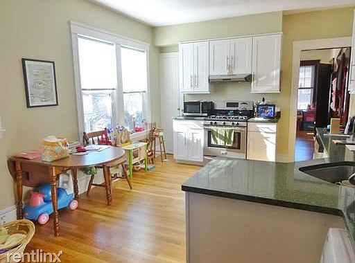 Sun drenched spacious two levels of living space. Hardwood floors, living room with decorative fireplace and separate dining room. Newly renovated kitchen with stainless steel appliances and quartz counter tops. Two full bathrooms and in unit laundry. Storage space in the basement. Big front porch, back yard and two off street parking including one garage space. Certified lead free. Close to multiple bus lines, easy access to Storrow Drive and Mass Pike. (RLNE2054222)