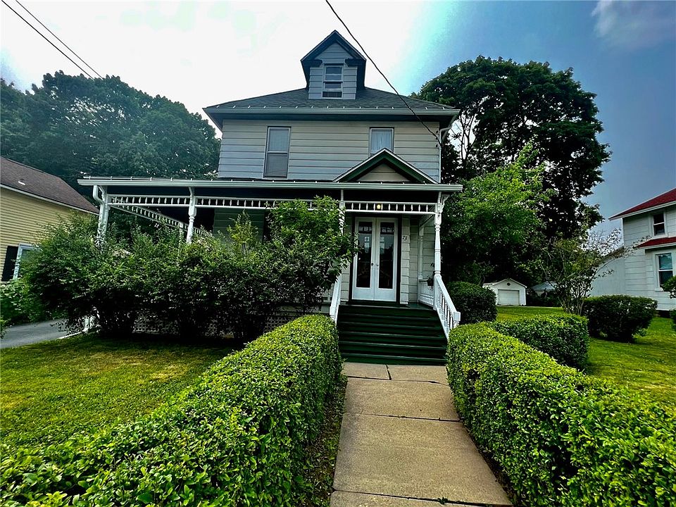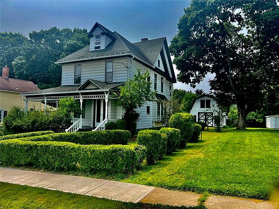 From The Moment You Walk Up to This Charming Colonial with Its Wrap Around Porch, You Will Be Impressed. The Home Has Tons of Character and Boasts 1736 Square Feet of Living Space. The Gorgeous Mahogany Woodwork and Gleaming Hardwoods Throughout the Home Add Loads of Charm. The Spacious Living Area Allows for An Open Floor Plan, Or You Can Separate It into Cozy Spaces Using the French and Pocket Doors. The Quaint Eat in Kitchen Features Beautiful Oak Cabinets and Leads onto The Three-Season Porch That Overlooks the Backyard. The Open Stairway Leads Up to Four Spacious Bedrooms, A Full Bathroom, And A Large Walk-In Attic. The Carriage House Has Space for A Vehicle, As Well As A Walk-Up Attic for Storage. Behind The Carriage House Is a Fenced in Private Area. Don’t Let This Beauty Pass You By. Priced To Sell.