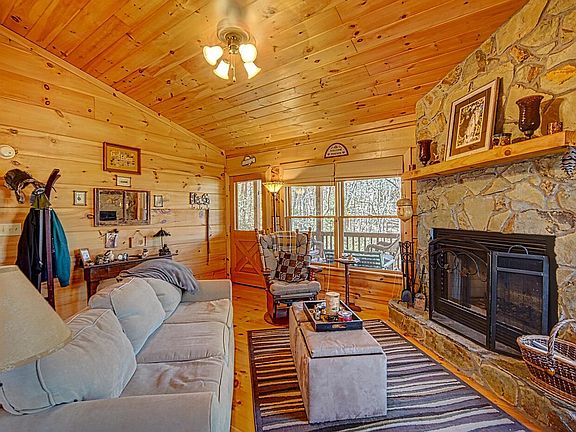 Cute as a button & ready for the investor that wants to dip their toe in to the short term rental market or needs to add to their rental portfolio! This is a no brainer investment due to the popularity of the community & it's convenient location to Downtown Blue Ridge & Aska Adventure Area! Fully furnished, all wood interior, great kitchen space, great room w cathedral ceilings & wood burning fireplace. Metal roof, high speed internet through ETC!! Only one owner & they enjoyed it themselves as a place to escape to peace & quiet. Large deck space great for hot tub area! Owner has parked 4 vehicles easily at the cabin. Side by side also conveys with the cabin.