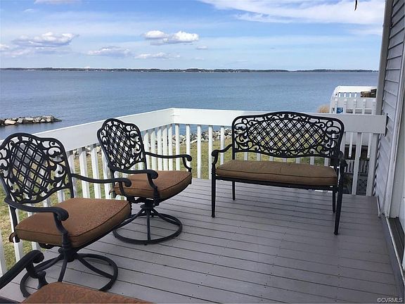 WATERFRONT CONDO! A must see in Queen Annes Cove. This FULLY FURNISHED Condo offers 2 bedroom, 2 updated baths, new stainless steel appliances ,granite countertops ,ceramic tile flooring, new ceiling fans, crown and chair rail with wainscoting below, fresh paint throughout, cathedral ceiling in great room with amazing views of the Rappahannock River. Walking distance to beach, pool, boat ramp and boat slip. Golf Carts are welcome and can be driven in the quaint Town of Urbanna.One year Home Warranty Included. Enjoy Waterfront living at its best!