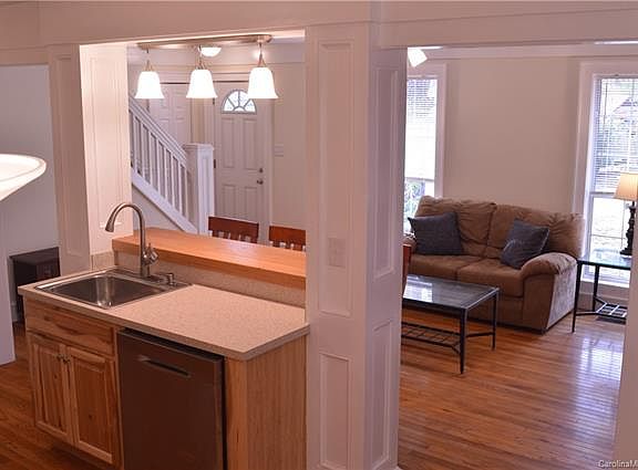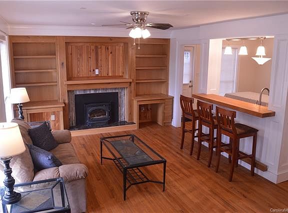 You'll love this warm and inviting 3-bedroom home with living room built-ins and a cozy fireplace. Eat-in kitchen has new cabinets and stainless steel appliances. Large bedroom and dual vanity bath on main level. Study with closet could be another main level bedroom. Two bedrooms and a full bath upstairs. Large family room with wood stove overlooks the back yard. Hardwood, tile, and laminate flooring throughout. Heat pump with natural gas furnace backup. Excellent location near Stoney Knob Café, just off I-26, Exit 21 - five minutes to Asheville and Weaverville. Views of Mt. Pisgah and beautiful sunsets! Walkable neighborhood with mature trees on quiet street. Back yard is mostly fenced.