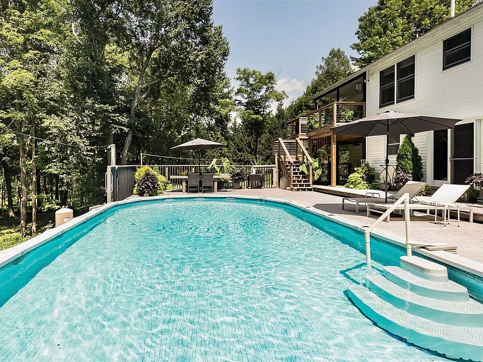 Private quiet country 4 bedroom & 3 bath summer rental retreat with heated salt water pool and salt water hot tub. This home is tasteful decorated with plenty of room to relax and entertain. A chefs fully equipped kitchen, deck off the kitchen with a gas barbecue and gas fire pit, a wood burning fire pit area in the garden, a pool side large deck with picnic table area and covered sitting area. Walk on the country road to Omega institute or 15 minutes drive to Rhinebeck or Red Hook villages. Available from June 15th to July 31st with a one month minimum at $20k and a $5k for each additional week. This is a very special property to relax and enjoy your summer vacation.