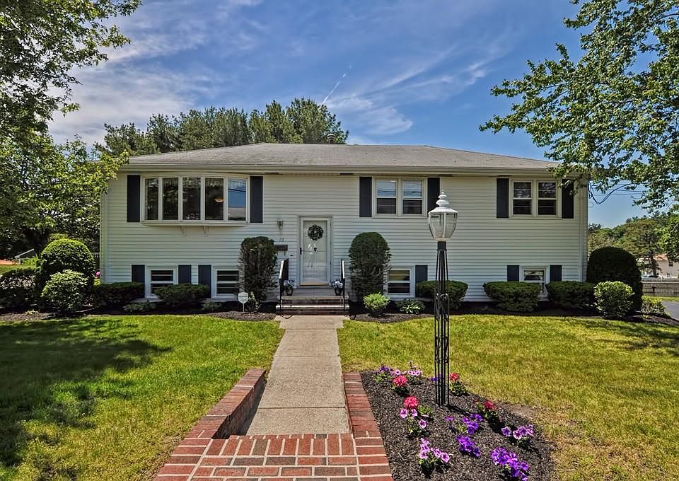 Move right in! Terrific well cared for Raised Ranch located in the desirable Prescott School District! Bright and sunny living room with bay window, formal dining room and eat in kitchen with tile floor and oak cabinets. This home features 2.5 baths, hardwood floors in 3 generous size bedrooms with double closets and full bath on main level including master bedroom with spacious mirrored closet and private master bath. Lower level has large family room and 1 additional bedroom with wall to wall carpeting, half bath and laundry also on lower level. Awesome corner lot with fenced in backyard and pretty manicured gardens in front yard. 2 car garage, security system, freshly painted interior, professionally cleaned carpets,hardwood floors, newer roof and hot water heater, lawn irrigation system, alarm system and easy to maintain vinyl siding with new shutters. Perfectly located, walking distance to Prescott School, minutes to town, Route 1 and 95 and commuter rail, don't miss this!