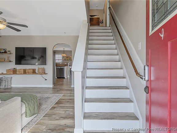 This gorgeous 3-bedroom, 2.5-bathroom home is close to Fort Liberty and thoughtfully designed to offer everything you need. Laminate floors flow seamlessly throughout the entire home—NO CARPET! As you enter the home, you are greeted with a spacious living room that flows into the kitchen area. The kitchen boasts crisp white cabinets that provide a bright, airy feel, complemented by stainless steel appliances and granite countertops that overlook the dining area. Upstairs, you’ll discover all three generously-sized bedrooms, each offering ample space and natural light. The large Primary Suite features stunning tile flooring and a spacious walk-in closet. Exit outside to your private, fenced-in backyard—a perfect spot for outdoor entertaining, pets, or simply unwinding from the day.