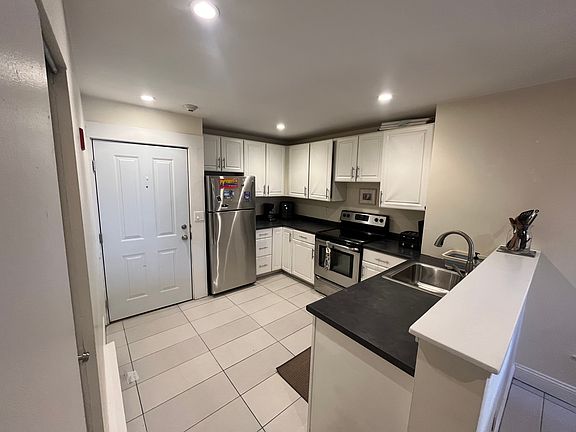 Private Deck, Sunny 3rd floor 1 Bed + office area in a fully renovated brick building! Best neighborhood, Jeffries Point! Private Deck overlooks beautiful garden. Newer cabinets and countertops, with 12" x 24" stone flooring in this spacious kitchen, featuring stainless appliances and inset LED lighting. Lots of natural light in dining area / office space with built-in shelving. Bathroom has custom granite countertop. Common laundry nearby. Professionally managed, hallways cleaned weekly. Sorry, no smokers and no pets. Term of Rental (months): 12 Broker fee: 1 months rent Rent Fee Includes: Water, Sewerage Disposal, Snow Removal First Mon Rent Reqd: Yes Last Mon Rent Reqd: Yes