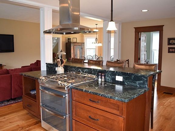 - Kit Dscrp: Main Level, Dining Area, Flooring - Hardwood, Countertops - Stone/Granite/Solid, Cabinets - Upgraded, Closet/Cabinets - Custom Built, Kitchen Island, Stainless Steel Appliances, Open Floor Plan, Recessed Lighting, Countertops - Upgraded, Remodeled, Window(s) - Bay/Bow/Box, Exterior Access, Gas Stove