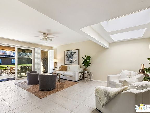Welcome to effortless desert living in the heart of Sunrise Country Club in Rancho Mirage. This home-like 3-bedroom condo is ideally positioned in a quiet, interior location, facing a lush greenbelt with gorgeous panoramic mountain views, a setting that delivers both privacy and wow-factor. Inside, the residence is filled with natural light and thoughtfully updated throughout. The remodeled kitchen, featuring quartz countertops and mountain views, pairs beautifully with the updated finishes, while the remodeled bathrooms blend style and function. Ceramic tile flooring flows through the main living areas for a clean, cohesive look. Generous room sizes and a smart floorplan give the home a true single-family feel, enhanced by a remarkable amount of storage rarely found in condo living. In addition to a large primary suite and spacious guest bedroom, the third bedroom offers outstanding versatility with a custom built-in Murphy bed, integrated storage, and an additional built-in desk, ideal for guests, a home office, or flex space. An oversized rear patio creates an exceptional indoor-outdoor living experience, perfectly positioned to capture the lush greenbelt and sweeping panoramic mountain views. It's an ideal setting for entertaining, dining al fresco, or simply enjoying the serenity of this quiet, tucked-away location. A private two-car garage adds everyday convenience and features abundant built-in storage cabinetry, providing exceptional space for organization, hobbies, or seasonal itemsan uncommon bonus in condo living. Practical upgrades include newer windows, newer A/C, and a newer water heater, offering comfort and peace of mind. Set within the guard-gated Sunrise Country Club, residents enjoy access to golf, pools and spas, tennis, pickleball, a clubhouse, and an active social scene, all just minutes from world-class dining, shopping, and entertainment. This is the rare combination of views, light, updates, storage, and location, desert living at its best.