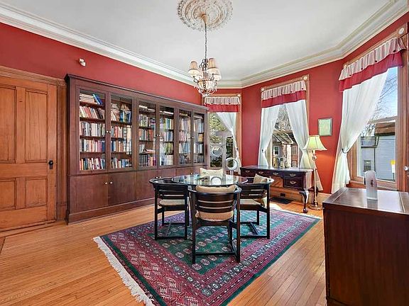 Poughkeepsie, 4 bedroom,2 bath tri level stunning Queen Anne Victorian on .19 acres of level property.This elegant historic home offers a totally updated cooks kitchen with granite counter tops and stainless steel appliances. Close to shops,Close to Hudson River &Close to Metro North. Multi-use home. The home exhibits stunning original 1800s stained glass windows, woodwork & built- ins, crown moldings hardwood floors throughout, & antique lightning fixtures. Enter through pocket doors to in the open concept 12 foot high ceiling parlor& library w/built ins & hardwood.Foyer offers elegance w stain glass & entrance to office. Formal Dining room is long w stone fireplace. Huge master, has alcove & hardwoods. Also, there is a servants staircase & widow walk. New windows,Yankee roof gutters upgraded electric & new hot water heater. Water source available in bedroom. 3 porches for relaxing. 2 car detached garage & off street space. Truly a gem you must see.