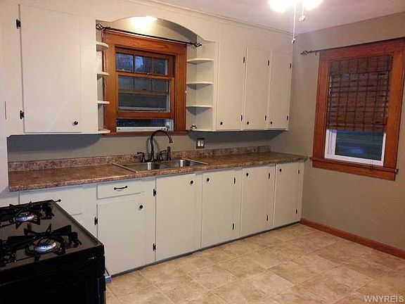 Well maintained double in quiet neighborhood close to thruway and shopping. Lower has updated windows, kitchen and bath remodeled, hardwood fllors in both units. Upper has access to open porch. Extra off street parking, shed and patio. Basement has glass block windows, new sewer lines and sump pump. Total of $1,400 in income monthly. could be me more if tenants had access to park in the large garage.