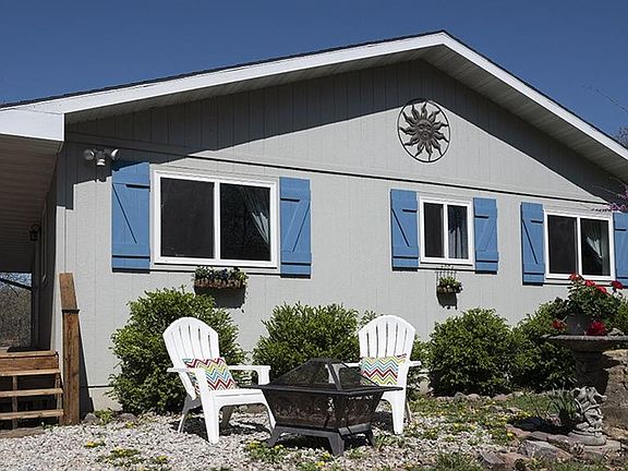 Just 1 hour south of Jo Co this tier-one, lake-front property provides a scenic birds-eye view of Sugar Valley Lake from its deck! It has its own private dock & Shore Station boat hoist. A craftsman-style ranch, built-in 2015 by well-respected local builders; Double-K Construction, it features 2 conforming bedrooms; 2 non-conforming bedrooms & 2 full baths. The home can easily sleep 8-10 guests. Its coveted open floorplan in the kitchen/hearth/living room feels extra large due to the 2 glass sliding doors that lead out to an over-sized & covered, cedar plank deck with a gorgeous lake view. The spacious kitchen features custom-built painted wood cabinetry, granite counter tops & stainless steel appliances. Move the granite-top island as needed because it's on wheels! A floor-to-ceiling, granite & stone wood-burning fireplace, crafted by a local tradesman is striking. The great room's 12 ft vaulted tongue & groove, wide-plank ceiling has rustic cedar beams & the entire main floor has hardwood flooring. The finished walk-out basements creates the perfect separate living area for guests. It walks out directly to a covered patio complete with an outdoor shower! Note: Home is partially furnished. The double-sized driveway allows for several vehicles. Rural water is a plus! An additional on-property pump brings lake water up for outside projects. The 90 acre lake (Sugar Valley) features a 9-hole golf course, club house, event room & swimming pool. There is also a swimming beach. The cute town of Mound City boasts a large annual arts/crafts fair as well as a wine-tasting room & restaurants. Holidays are a celebration at the lake with lots of fireworks! Lake living is good! DECKS ARE BEING RE-STAINED CURRENTLY!