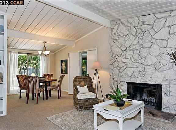 Just minutes from vibrant downtown Walnut Creek, this special mid-century home boasts a HUGE yard w/ fruit trees.Wood & beam vaulted ceilings.Open living/dining area fireplace.Sunny kitchen overlooks large covered deck and backyard.Spacious family room.Master BR with newly updated bath. Open Sun