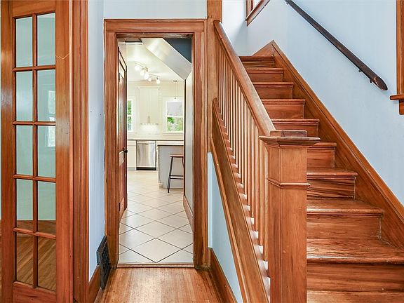 Welcome to this charming 1920’s Old Style home! This timeless beauty boasts hardwood floors and crown molding throughout, offering a blend of classic elegance and comfort. The living room features built-in cabinets and wood-glass French doors, creating a cozy yet sophisticated atmosphere. Enjoy meals in the formal dining room or the updated eat-in kitchen, complete with solid surface counters, a stylish backsplash, and stainless steel appliances. A convenient 1st floor half bath adds to the functionality of the main level. Upstairs, discover two spacious bedrooms and a full bath, along with a primary suite that grants access to a private porch, perfect for morning coffee or evening relaxation. The home also includes a full attic, ideal for storage or potential expansion. Step outside to a fully fenced backyard with a charming porch, perfect for entertaining or enjoying peaceful moments. This home is a perfect blend of historic charm and modern amenities, ready to welcome you home! Added bonus, this property qualifies for The Premium Mortgage Target Census Track which gives you $2000 towards closing costs.