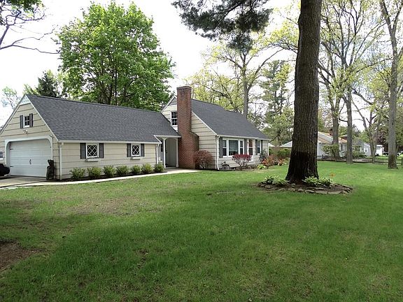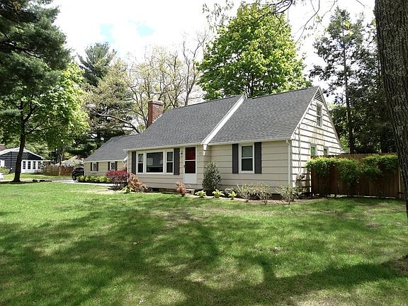 Fantastic well-maintained Cape on corner lot in lovely Sixteen Acres neighborhood, with walkup attic/unfinished 2nd level. Upgrades include Newer Roof, Furnace, Central Air, Gutters, Garage Door, Inground Lawn Sprinkler (front yard), Water Heater, and more! The kitchen features tile floors, handsome cabinetry, cozy dining area, and separate hallway to a half bath. The living room has hardwood flooring, a wood-burning fireplace, and picture window that lets in lots of natural light. A full bath with tile flooring and 2 good-sized bedrooms with refinished hardwoods and double closets complete the first level. An oversized two-car garage is heated and freshly painted. The front yard is nicely landscaped, and a spacious fenced backyard has a lovely patio area and storage shed.