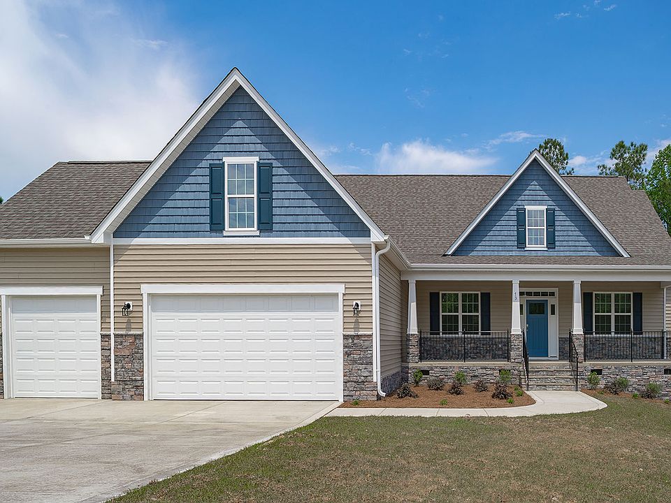 McKee Homes presents the Castle Rock, which features all your main living areas on one level. Stepping inside from the large covered porch, you'll find a study, as well as a formal dining room. The large gourmet kitchen features an island with breakfast bar, which overlooks the great room, as well as an adjacent breakfast nook. The master suite is in its own wing of the home, allowing for extra privacy. The master suite features a large walk-in closet, as well as separate shower and garden tub and dual vanities in the bath. Two guest bedrooms on the opposite end of the home share a full bathroom. Upstairs, you'll find unfinished storage. Oakmont offers country living in a family-friendly, gated community. It's close to Ft. Bragg, Lillington and Fayetteville.
