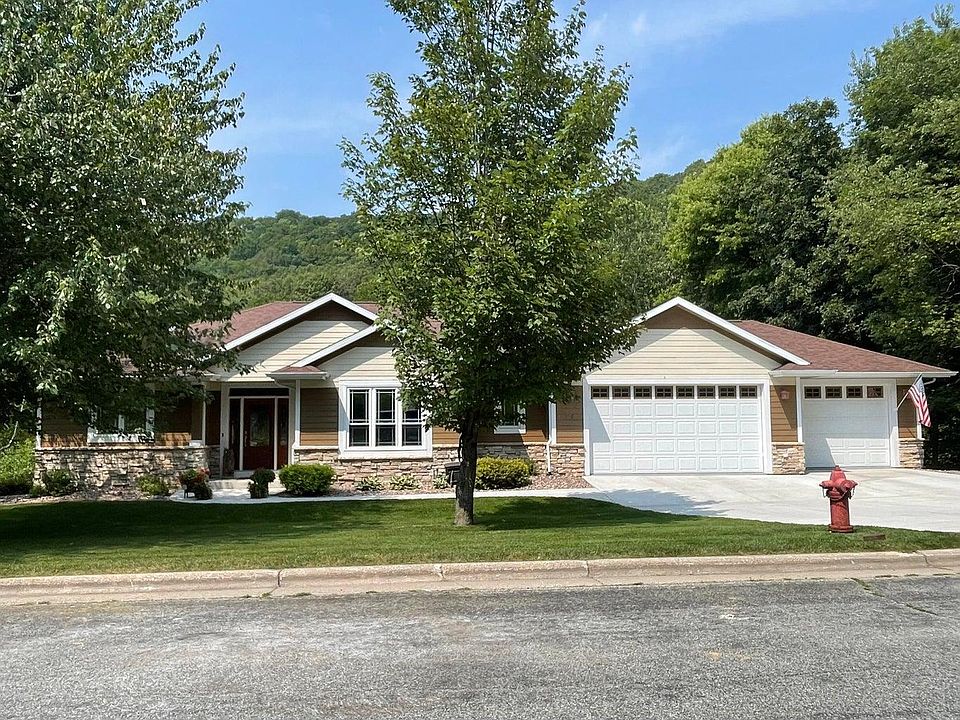 Elegant custom built home in the West Bank Addition. 4 bedroom, 2.5 bathrooms and an attached 3 car garage. Beautiful wood floors welcome you into this home and warming wind throughout the main level. Kitchen has quartz countertops, cherry cabinets, high bar and a one of a kind walk in panty. Great room with vaulted ceilings and a cozy fireplace. Relaxing screened in porch off the dining room. Master bedroom with builtin in shelves and a private master bathroom with a double vanity and jetted tub. Lower level family room is wired for speakers and walks out to a private patio. Convenient access from the garage to the basement. Amazing updates throughout! A must see!