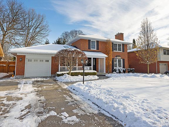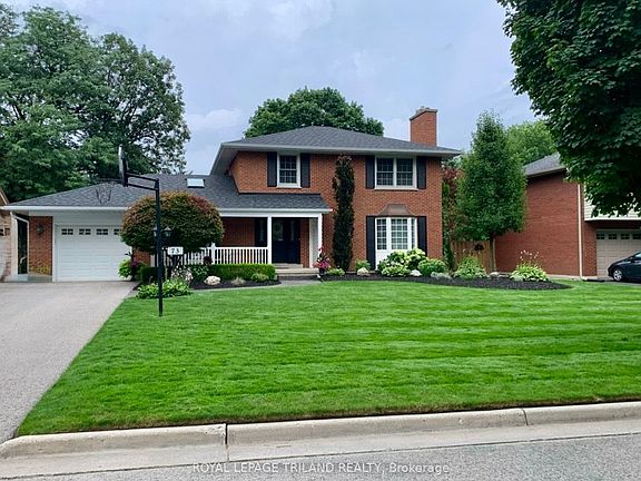 Discover a rare chance to own a stunning all-brick two-storey home in the heart of Northridge - one of London's most coveted neighbourhoods. Beautifully updated and lovingly maintained, this meticulous 4-bed, 2.5-bath home blends classic craftsmanship with modern comfort in every room. Bright, spacious, and impeccably kept, it offers generous bedrooms with great closet space, custom trim details, and a warm main-floor family room perfect for gathering, relaxing, or play. The light-filled kitchen features stainless appliances, a gas stove, and effortless flow to the dining area, where French doors open to a true backyard oasis. Set on an impressive 68 ft x 124 ft lot, this private outdoor retreat is designed for living and entertaining-complete with a 15x30 ft inground sport pool, stamped concrete patio and walkways, lush landscaping, newer fencing, privacy screening, a powered shed, and convenient roll-up yard access from the garage. An elegant breezeway connects the garage to both the home and the rear yard, adding everyday convenience. The fully finished lower level expands your living space with a recreation room, exercise area, utility room, laundry, bathroom, and a bonus cold room, while a private driveway with parking for six vehicles adds even more value. Tucked on a quiet crescent and steps from London's top-rated schools and premier North London amenities, this remarkable property offers the perfect blend of comfort, style, and lifestyle convenience-welcome home.