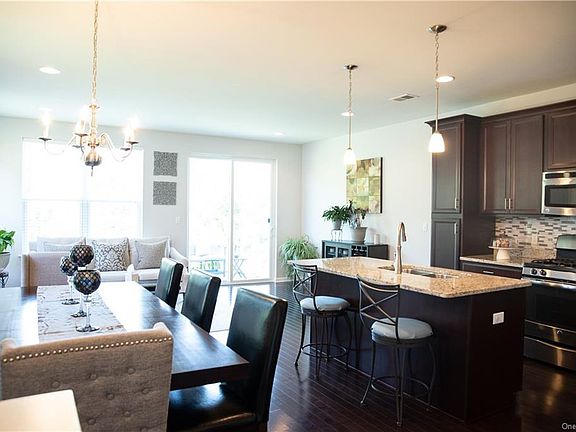 Come check out this end unit townhouse with excellent features and finishes. Meticulously maintained home featuring hardwood floors throughout the first floor and carpet on the upper and lower levels. Beautiful open concept first floor, with a great entertaining space below. Upgraded cabinet finishes and stainless appliances highlight the kitchen. Second level offers three bedrooms and two baths, including a master bedroom with cathedral ceilings and master bath complete with soaking tub. Lower level has been roughed in with plumbing and electric for a possible bathroom or wet bar This home has endless options for dining and entertaining with a porch off of the first level and a cement patio outside the walkout basement. Community offers access to clubhouse, in-ground pool and basketball courts. Close to public transportation, hospital, shopping centers and highways. Square footage includes 450 sq ft. finished Lower level.