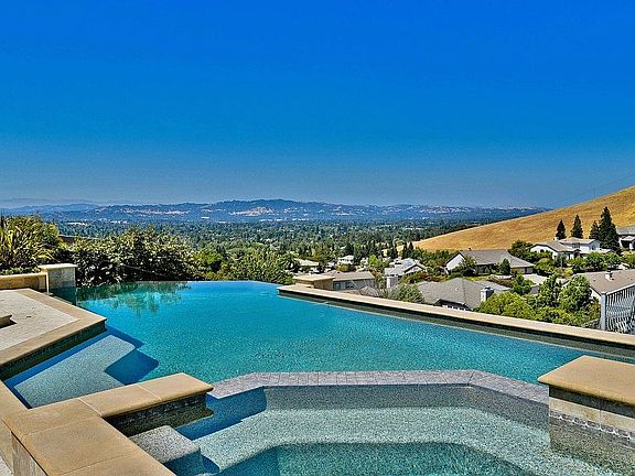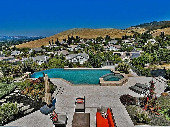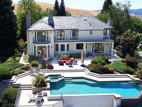 New Listing. California Living at Its Best! Stunning Harold Smith Custom Home with Spectacular Panoramic Views & Captivating Sunsets... Fabulous curb appeal with slate roof and gated courtyard entry. Dramatic living and dining rooms with patio doors and amazing views. Modern gourmet eat-in kitchen with top of the line appliances and stylish finishes opens to a large family room with French patio doors and incredible views. One bedroom suite on the main level with separate entry. Impressive master suite with fireplace, retreat or office space, luxurious Carrera marble bath and balconies with views forever. Two additional bedrooms with Jack and Jill bath and balconies. Fifth bedroom or bonus room with full bath. Entertainer's dream backyard with expansive patios, lush landscaping, numerous walkways, infinity pool with spa and truly mesmerizing views of the Valley. Open Friday 6 to 8pm. Open Saturday and Sunday 1 to 4pm.