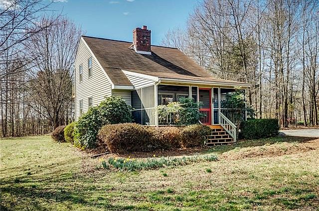 Don't miss this CHARMING Cape on 13 tranquil acres with a small pond. This property feels like a retreat out of a storybook, and once you're home from a days work, you'll never want to leave. Enjoy the wildlife and serene views of the yard lined with various fruit trees, all from your wide screened porch. Or hang out on the back deck with two mature kiwi vines wrapping a beautiful pergola. Inside you will find an open living room with vaulted ceilings, centered by an inviting wood stove and a grand 2 story chimney. Kitchen is open and well equipped with ample counter space and storage. Home has been lovingly cared for inside and out and freshly painted with neutral colors. Additional space available in the very dry and clean basement, which can be finished off or left as is for a convenient work shop or storage area. Outdoors you'll find a 1 car detached garage with attached shed, paved driveway, pond and 13 acres of gorgeous Fluvanna countryside. There are very few properties like this. Walk on trails, ride atvs, hunt, fish or turn this in to a mini farm. No restrictions. This is YOUR land to do as you please. Don't miss this opportunity to make this paradise your home!