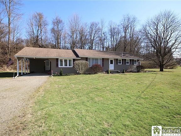 Cozy and practical three bedroom ranch set on just over an acre on a rural road. This home is the ultimate in convenience and function. There is a thoughtfully laid out eat-in kitchen with all the requisite appliances. The living room and adjacent family room are spacious, and there is a bonus storage room. Each of the bedrooms is equipped with closet space. The full basement has an exterior walk-up with bulkhead doors, and there is an attached carport. There is plenty of yard to enjoy the warmer months, and a shed to store all of your lawn-care tools.