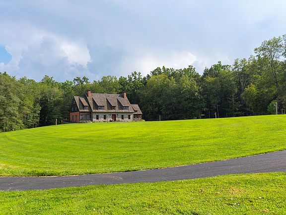 An outstanding example of Dutch stone architecture, 73 Mill Dam Road exudes the rich history of the Huguenots immersed in the local charm and natural surroundings of magnificent Hudson Valley, New York. Inspired and designed after the Jean Hasbrouck House in Huguenot village located in New Paltz, this home was built in 2002 with the design, craftsmanship, and detail of the eighteenth century. It includes original stone from the local quarry; wood beams, doors, flooring and staircases milled from the property's oak, pine and cherry trees and iron hardware on doors and railings made specifically for this home. There is a left and right wing - each with its own living room with fireplace, electrical service, hot water heater and central air conditioning system. Seven bedrooms, each with an ensuite bathroom, a beautiful chef's kitchen, third floor media room complete with wet bar and a vaulted ceiling, lower-level recreation room and den, end-to-end exterior deck and in-ground pool complete this breathtaking 10,000 square foot estate. Set on 79+ park-like acres, the property includes ponds, streams and various species of forest your own oasis of privacy, tranquility and peace, conveniently located close to New Paltz, Rhinebeck, and Kingston which is rich in history and the arts.