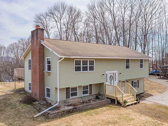 Just a quick 2 mile ride from I-89 exit 6, you could be home to enjoy the peace, privacy, and views offered by this beautiful property. Sitting on 1.32+/– acres this 4 bed 2 bath home has plenty of space to garden, entertain inside and out, and much more. The spacious living room is open to the kitchen, dining area, and back deck. Downstairs offers a huge rec room with a pellet stove and generous mudroom upon entry. All windows were replaced with low-E efficient glass in 2021. Outside there is a 2 car garage, lots of lawn and even a playhouse or shed that could be used as a chicken coop. Showings begin with the open house on Friday April 21st from 5-730pm.