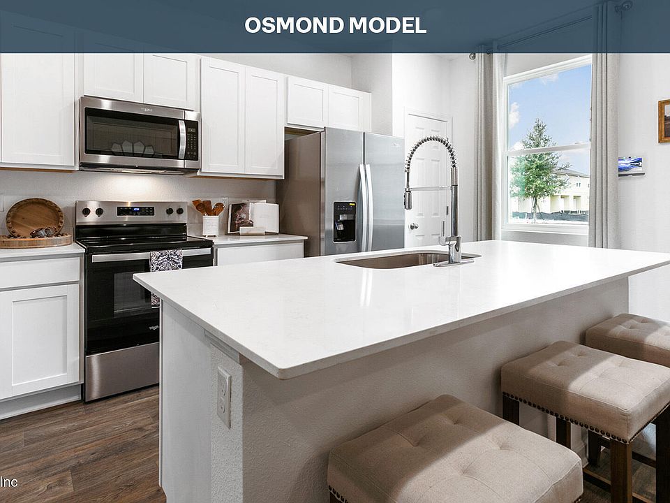 Enjoy Spacious Living and Smart Design with The Osmond. This Express Series townhome offers more than meets the eye. With 1,109 square feet, this beautifully crafted plan is the perfect blend of comfort and style with 2 bedrooms and 2.5 bathrooms. The Osmond's open-concept layout features a spacious kitchen which flows into a cozy living room, perfect for everyday living and entertaining. The large kitchen bar allows guests to gather and socialize while preparing meals. The sliding glass door leads to a covered patio allowing for seamless indoor and outdoor living. Upstairs, the main suite is your personal escape, complete with a roomy bathroom, vanity, and walk-in closet. Modern finishes and energy-efficient features make this home as practical as it is beautiful. The Osmond comes with D.R. Horton's exclusive Home Is Connected® smart home package, giving you integrated smart devices to keep you connected and in control.