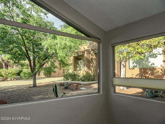 Welcome to your new oasis in a premier location within the Morning Sun Condo Community in west Sedona. This private area has a spacious common area just beyond your private covered patio. This meticulously maintained condo exudes pride of ownership from the moment you step through the door. Featuring a remodeled kitchen tastefully updated with granite counters, warm wood cabinets, & convenient pull-out shelves in lower cabinets for easy access. The convenient built-in oven is electric while the cook-top is gas, offering efficient and versatile cooking options. More recently this charming condo home has been brightened up with fresh paint, New HVAC Gas Pack (electric A/C & natural gas heat) was installed in May 2023, new window coverings, and (see more) new LED lighting. Every corner of this home showcases exquisite craftsmanship and attention to detail, ensuring a welcoming atmosphere with functional tile flooring throughout. New HVAC Gas Pack (electric A/C and natural gas heat) was installed in May 2023. Enjoy a roomy one-car garage with built-in shelves for storage and a laundry area. Extra parking available in the driveway apron. A minimum rental period of 4 months per the CC&Rs, ensures the friendly, residential community atmosphere in Morning Sun. Don't miss out on your dream home. Discover the tranquility and comfort this condo has to offer, perfectly blending style, functionality, and privacy into an opportunity you can't afford to overlook.
