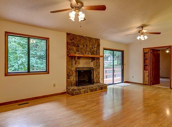 Enjoy the wooded park-like setting from your full length deck of this spacious home. One level split floor plan offers vaulted ceiling and stone fireplace in the Great Room. The open kitchen offers new stainless appliances, abundant cabinetry, and a breakfast bar. Bedrooms offer direct deck access through sliding glass doors with plantation shutters. Two bonus rooms are ideal as an office or den. Relax on the back deck or sunroom overlooking your gentle yard. Unfinished basement has space for hobbies, exercise and storage. Separate 16x20 workshop for the handyman, gardener, or artisan. Attached garage, circular driveway, plus nice landscaping. Picture perfect and ready for you to come home!
