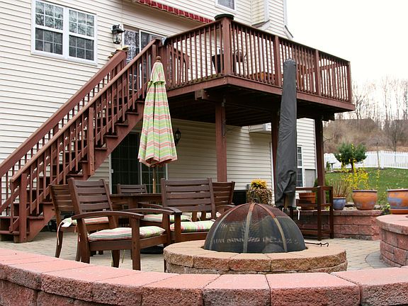 Come view this beautiful spacious contemporary colonial that is nestled in the Riverbend community.As you enter into the foyer you have gleaming hardwood floors throughout the home.The extended dining room is ready for those large family holiday gatherings that you will be able to host throughout the year.Enjoy the cozy seating area that overlooks the patio that is perfect for reading or sipping your morning coffee.The newly remodeled kitchen has new granite countertops, cabinetry-center island that is perfect for cooking meals and baking.The kitchen opens into the family room which has a fireplace that warms the whole first floor that makes it cost effective throughout the year in heating bills.The vaulted ceilings adds some contemporary features to this colonial.Fold your laundry with ease on the countertop area next to the 2nd floor laundry room.The master bedroom suite has a large walk in closet that is ready for your collection of shoes or clothing.Enjoy the whirlpool bathtub for relaxation from those long workdays.The 3bedrooms can be for your children or used as either an office, play/craft room.The fully finished basement has an inlaw suite or guestroom.Walkout to the stone patio that has a built in firepit that is perfect for those brisk nights.The new deck overlooks the woods and flowing brook which makes this home feel secluded & private.Located at the end of the cul-de-sac and at the entrance of the walking trail along the river.Welcome Home!