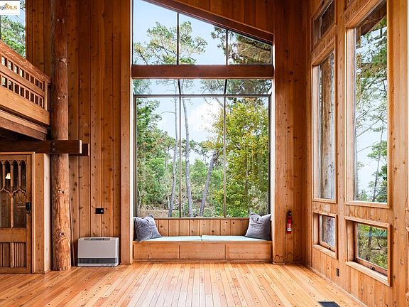 Surrounding redwoodsMonterey pinesPrivate beach accessWalls of glassSoaring wood-beamed ceilingsRich hardwood floors